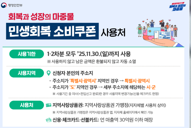 지역 제한: 신청한 시·군·구 내에서만 사용 가능 (예: 수원시는 수원시 내에서만 사용)