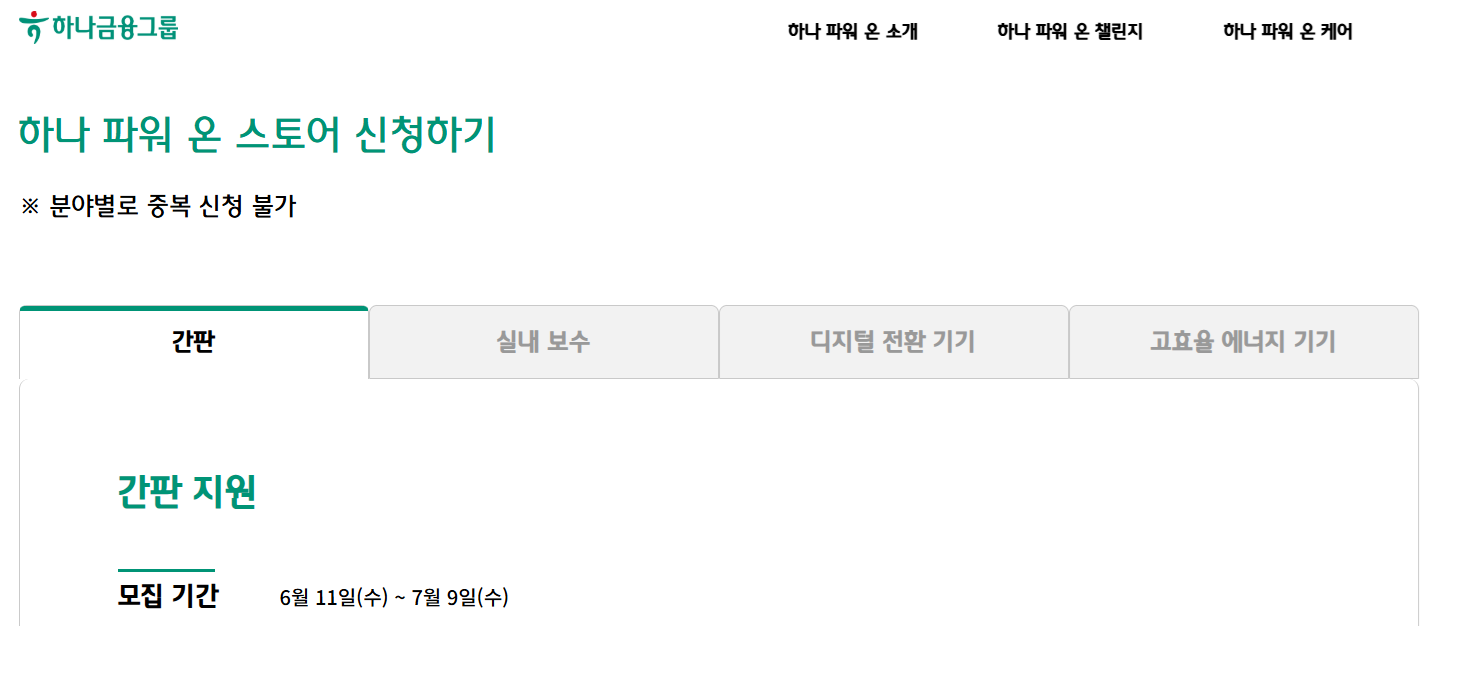 A. 하나파워온스토어 공식 홈페이지에서 신청 가능합니다.